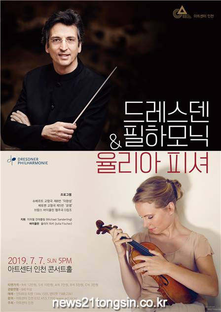 ‘아트센터 인천(ACI)’이 2019년 하반기 시즌을 화려하게 시작한다. 오는 7월 7일 독일의 명문 오케스트라인 드레스덴 필하모닉과 바이올리니스트 율리아 피셔의 내한공연을 앞두고 있다. 음악의 고도 드레스덴이 자랑하는 최고의 오케스트라가 들려주는 독일 정통 사운드를 아트센터 인천의 수준 높은 음향으로 감상할 수 있는 기회가 될 것이다.