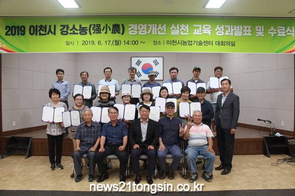 이천시농업기술센터가 17일 농업기술센터 대회의실에서 2019 강소농 경영개선 실천교육 수료식을 가졌다.
