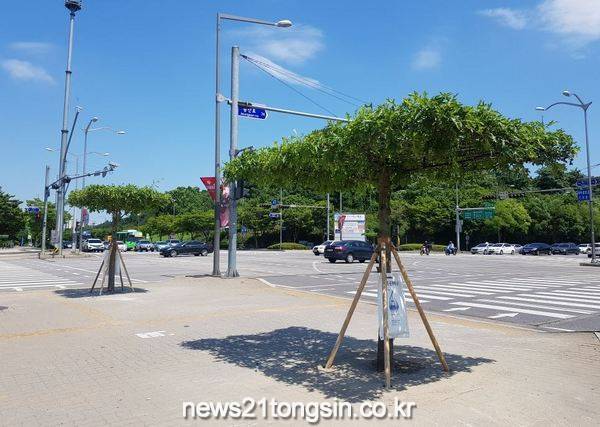 구는 최근 이 그늘목을 월드컵경기장 사거리와 상암사거리, 신촌 로터리 등 주요 지역 7곳에 시범으로 설치했다.