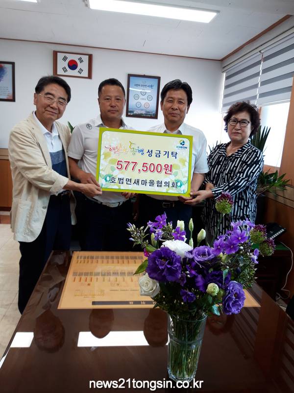 호법면새마을협의회(회장 이호환,문인자)는 영농 폐비닐을 수거 ? 판매하여 관내 소외계층을 위해 써 달라며 수익금 577,500원을 호법면지역사회보장협의체(호법면삼니웃, 위원장 이주홍)에 기탁하였다.