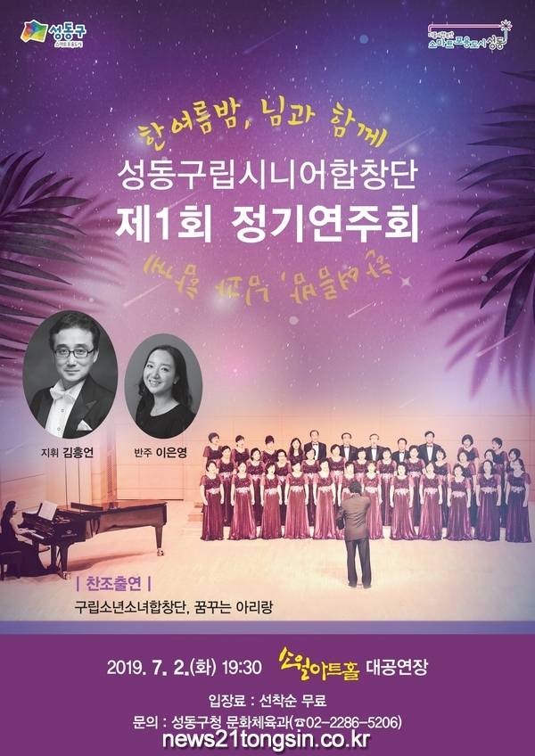 ▲ [사진=포스터]성동구(구청장 정원오)는 오는 7월 2일 19시 30분부터 소월아트홀 대공연장에서 지역 내 어르신들로 구성된 성동구립시니어합창단의 제1회 정기연주회를 개최한다고 밝혔다.
