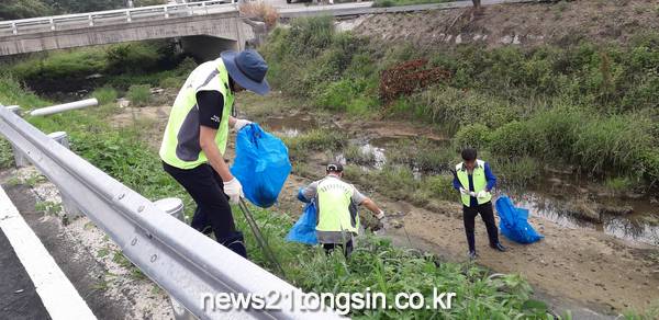 이번 환경정화 활동에는 주민자치 위원 20여명이 참여해 하천주변의 잡풀 및 유해식물을 제거하고 방치된 생활쓰레기를 수거하는 등 깨끗한 환경 조성을 위해 구슬땀을 흘렸다.