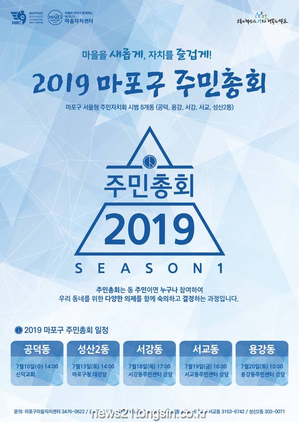 주민총회가 개최되는 시범동은 ▲공덕동 ▲용강동 ▲서강동 ▲서교동 ▲성산2동이다.