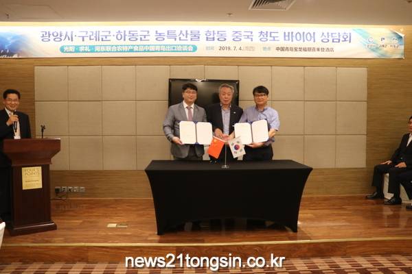경남 하동군과 전남 광양시, 구례군이 공동으로 7월 4일(목) 중국 청도 쉐라톤 호텔에서 영호남 우수 농수산식품 수출확대 상담회 및 판촉행사를 개최했다.