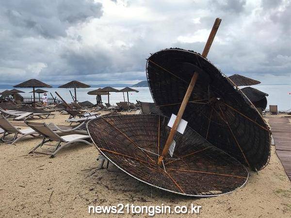 강풍과 폭우 및 우박이 수요일 늦은 오후 그리스 북부를 강타하여 2 명의 어린이를 포함한 관광객 6명 이 살해되었고 나무는 뿌리 뽑히고 지붕이 무너져 부상당한 사람들이 100 명이 넘었다고 로이터통신이 보도했다.