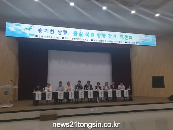 민·관 협력에 의한 살아 숨쉬는 인천하천살리기를 추진하고 있는 인천광역시 하천살리기추진단(단장 : 박준하 행정부시장, 최계운 인천대 교수)은 7월 11일(목) 오후 6시 인천시청 대회의실에서 인천하천 현안점검 토론회 두 번째 <승기천 상류, 물길 복원 방향성 찾기 토론회>를 개최하였다.