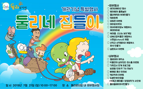 ▲ [사진제공=도봉구청]도봉구(구청장 이동진)는 둘리뮤지엄 개관 4주년을 맞아 오는 7월 21일 오전 10시부터 오후 5시까지 뮤지엄 안팎에서 ‘둘리네 집들이’ 행사를 개최한다.