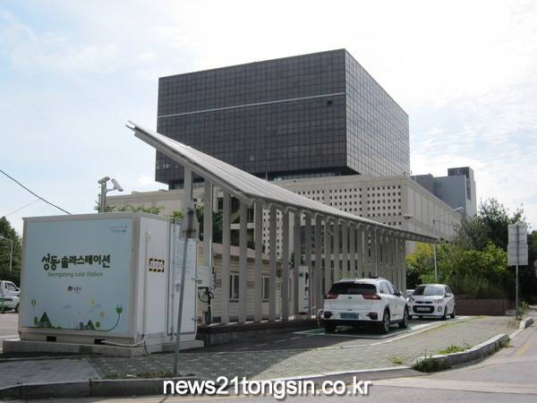 ▲ [사진=성동솔라스테이션]성동구(구청장 정원오)에서 햇빛(태양) 에너지 전력을 바로 전기자동차에 충전 할 수 있는 시스템인 ‘성동 솔라스테이션’을 일반인에게 개방하여 운영한다.