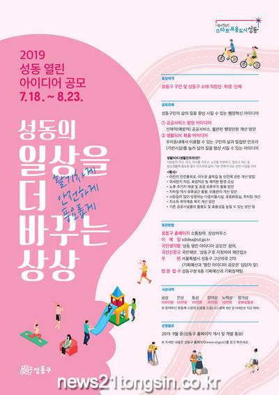 서울 성동구(구청장 정원오)에서 일상을 더욱 편리하게 바꾸는 주민들의 신선한 아이디어를 발굴하기 위해 오는 8월 23일까지 한달간 ‘성동 열린 아이디어 공모’를 진행한다.