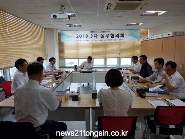 경상남도 노사민정실무협의회가 24일(수) 오후 2시, 한국노총, 경남경총, 창원상공회의소, 창원지방고용노동지청, 한국산업인력공단 경남지사 등 관련기관 실무위원 10여 명이 참석한 가운데 올해 3번째 실무협의회를 개최했다.