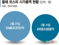코스피가 3월 최악의 한 달을 보냈다. 새해 들어 2월 말까지 4300선에서 6000선까지 오르며 신기록을 썼지만, 중동 전쟁 발발로 코스피는 2008년 금융위기 이후 역대급 변동성을 보이면서 한 달 만에 시가총액이 1000조원 가까이 증발했다.31일 한국거래소에 따르면 3월 유가증권시장 시가총액은 4159조858억원으로 중동전쟁 발발 직전 거래일인 2월 ...