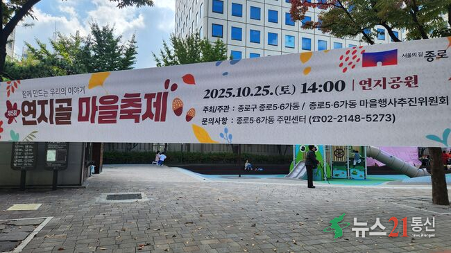 2025년 10월 25일(토) 오후 2시, 연지공원에서 '함께 만드는 우리의 이야기'를 주제로 제5회 연지골 마을축제가 성황리에 개최되었다.이번 축제는 종로구 종로5,6가동 주민자치위원회와 마을행사추진위원회가 주관하고, 관내 기관,단체와 자원봉사자들이 힘을 모아 준비한 주민 주도형 마을 축제로 꾸며졌다.□ "이웃의 정이 살아 숨 ...
