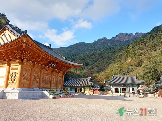 대웅전 앞에서 바라볼수있는 병풍처럼 아름다운 등산로다.