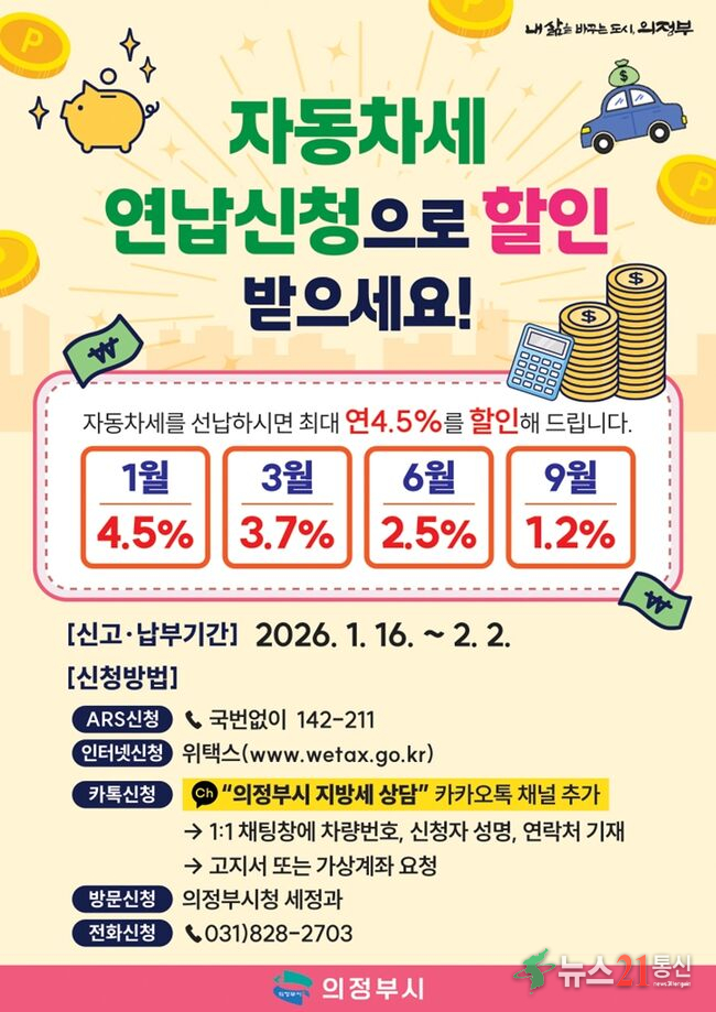 의정부시, 1월 자동차세 연납 시 4.5% 할인