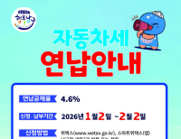 의정부시(시장 김동근)는 자동차세를 1월에 연납으로 납부하면 연간 세액의 최대 4.5%를 공제받을 수 있다고 밝혔다.자동차세 연납은 매년 6월과 12월에 정기적으로 납부하는 자동차세를 1월에 미리 한꺼번에 납부할 경우 세액 공제 혜택을 받을 수 있는 제도로, 납세자의 신청 및 납부가 필요하다.시는 지난해 연납한 차량에 대해서는 별도의 ...