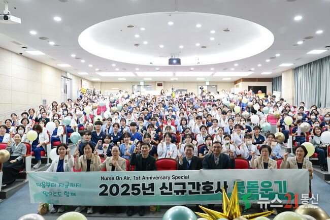 원광대학교병원(병원장 서일영)이 지난 6일 외래 1관 4층 대강당에서 ‘2025년 입사 신규 간호사 북돋우기 행사’를 열고 입사 1주년을 맞은 신규 간호사의 노고를 치하했다. 이번 북돋우기 행사는 “Nurse On-Air: 1st Anniversary Special”이라는 콘셉트로, 신규 간호사들이 지난 1년간 임상 현장에서 쌓아온 성장의 순간을 함께 되돌아보..