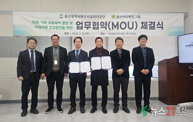 울산북구시설관리공단은 12일 공단 회의실에서 울산시티병원그룹과 직원·가족 의료복지 향상 및 지역사회 건강증진을 위한 업무협약을 체결했다.