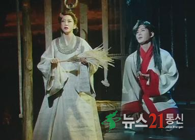 짙은 안개 사이로 드러나는 산과 강, 은은한 조명 아래 펼쳐지는 꿈과 현실의 경계가 마치 한 폭의 동양화 속을 걷는 듯한 무대를 만들어낸다.