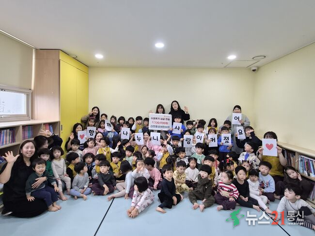 [뉴스21 통신=최병호 ](사진출처=울산북구청)신천효성 어린이집은 20일 북구 농소2동 행정복지센터에 나눔장터 수익금 130만원을 취약계층을 위해 기부했다.