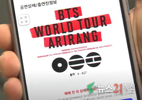 온라인에는 벌써부터 4월 예정된 BTS 국내 공연 티켓을 판매하겠다는 글이 잇따라 올라왔다. 일부 표는 한 장당 99만 원에 거래되며, 정가보다 5배가량 비싼 암표도 등장했다. 경찰은 대리 구매와 암표 거래가 우려된다며 주의를 당부했다.