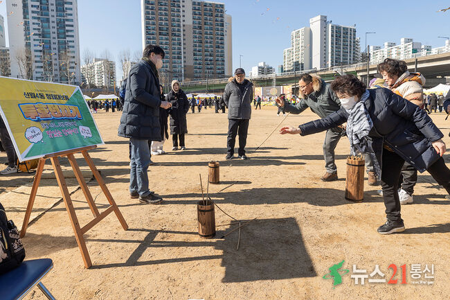 사진5) 지난해 양천구, 정월대보름 민속축제에서 투호 던지기를 체험하고 있는 주민들