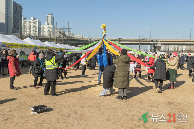 사진4) 지난해 양천구, 정월대보름 민속축제에서 단심줄놀이를 하며 한 해의 안녕과 풍년을 기원하고 있는 주민들