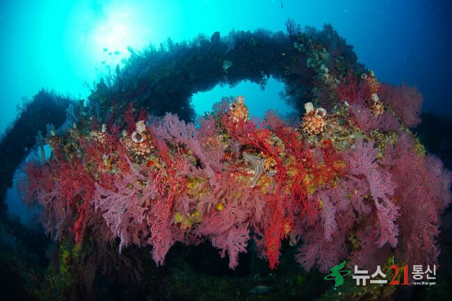 이러한 산호 생물군은 해조류·암반·해양 구조와 복합적으로 결합된 생태계를 형성하며, 다이버와 연구자에게 관찰 지점으로 흥미로운 대상이 된다.기후 변화와 환경 스트레스(예: 수온 상승·갯녹음)은 동해 연안 생태계와 산호 주변 서식처에 영향을 미치며, 이를 완화하고 생태계를 보전하기 위한 연안 바다숲 조성 사업 등이 추진되고 있다.