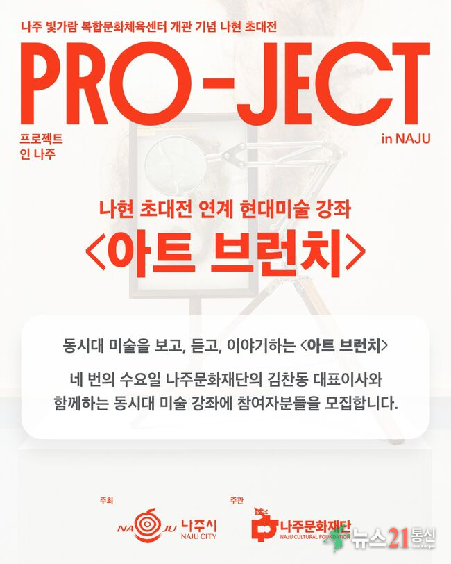 이번 강좌는 빛가람복합문화체육센터 개관 기념으로 열리고 있는 나현 초대전 ‘PRO-JECT in NAJU’와 연계하여 기획되었으며, 시민들의 현대미술에 대한 문턱을 낮추고 문화 향유 기회를 넓히기 위해 마련됐다.