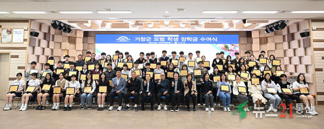 [뉴스21 통신=김희백 사회2부기자] 거창군은 3일 거창군청 대회의실에서 귀뚜라미문화재단이 주관하는 ‘2026년 거창군 모범 학생 귀뚜라미 장학금 수여식’을 개최했다고 밝혔다. 이날 행사에는 최진민 귀뚜라미 그룹 회장과 김현미 거창군수 권한대행, 장학생, 학부모 등 90여 명이 참석해 미래를 향한 학생들의 도전과 성장을 함께 격...