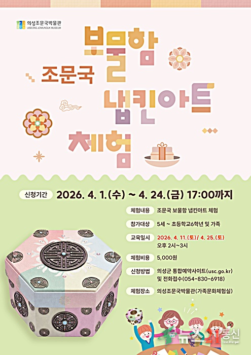 의성군(군수 김주수)조문국박물관은 어린이와 가족 관람객을 대상으로 우리 문화유산의 의미를 쉽고 흥미롭게 배울 수 있는 체험형 교육프로그램 ‘주말엔 박물관 - 보물함 냅킨아트 체험’을 운영한다. 이번 프로그램은 소중한 물건을 담는 보물함을 직접 만들어보는 체험으로, 만들기 활동과 전통 문양에 담긴 상징과 숨은 의미를 .