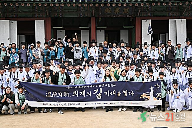 경상북도는 안동시·도산서원과 함께 3월 30일(월) 서울 경복궁 만춘전 앞에서 제6회 ‘퇴계선생 마지막 귀향길 재현행사’를 개막하고, 참가자 250여 명이 270km(약 700리)에 달하는 14일간의 대장정에 나섰다. 1569년(선조 2년) 음력 3월, 퇴계선생은 선조 임금과 조정의 만류에도 불구하고 지역발전과 후학 양성을 위해 고향 안동으...