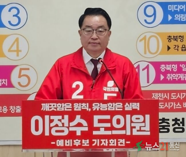 충북 제천시 제1선거구 충북도의원 선거에 출마한 이정수 예비후보가 기자회견을 열고 공식 출마를 선언하며 지역 발전을 위한 12대 핵심 공약을 제시했다.이 예비후보는 “무거운 책임감과 간절한 마음으로 이 자리에 섰다”며 “이제는 뒤에서 돕는 사람이 아니라 앞에서 책임지는 사람이 되겠다”고 밝혔다.그는 지난 13년간 ...