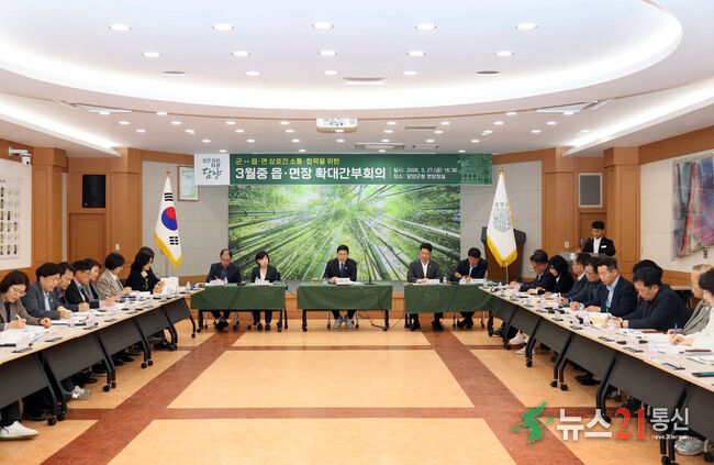 [뉴스21 통신=이준범 ]담양군이 본격적인 봄철을 맞아 산불 예방과 영농 지원 등 시급한 군정 현안을 챙기기 위해 현장 중심의 행정력을 결집하고 있다.담양군은 지난 27일 군청 면앙정실에서 전 부서장과 읍·면장이 참석한 가운데 ‘읍·면장 확대간부회의’를 열고 주요 현안 및 협조 사항을 심도 있게 논의했다고 밝혔다.산.