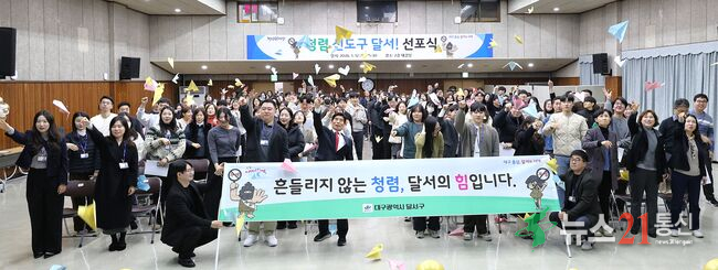 (뉴스21통신) 최우성기자 =대구 달서구(구청장 이태훈)는 신뢰받는 투명 행정 실현을 위해 12일 구청 강당에서 전 직원이 참석한 가운데 ‘청렴 선도구 달서! 선포식’을 개최하고, 강력한 실천 의지를 밝혔다.이번 선포식은 기존의 선언문 낭독 중심 형식을 탈피해, 세대를 아우르는 소통과 공감을 통해 청렴 실천 의지를 다졌다는 점에...