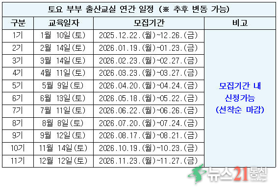 서울 강서구(구청장 진교훈)는 예비 부모에게 출산과 육아 정보를 제공하기 위해 ‘부부 출산 준비교실’을 운영한다. 이번 교육은 평일 참여가 어려운 직장인 부부를 위해 주말에 진행되며, 임신과 출산 과정에 필요한 신체적·정서적 준비를 돕고자 마련됐다. 교육은 매월 둘째 주 토요일 오전 10시부터 2시간 동안 강서구보건소(...