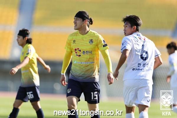 ▲ 사진=대한축구협회(KFA)춘천시민축구단의 베테랑 센터백 오성훈이 단단한 수비력을 앞세워 팀을 승강 결정전으로 이끌었다.