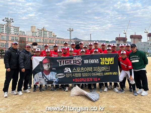 KIA타이거즈 내야수 김선빈이 모교 야구 꿈나무들에게 야구 용품을 기부했다.