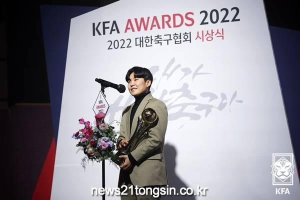▲ 사진=올해의 선수로 선정된 지소연 / 대한축구협회(KFA)2022 KFA 어워즈가 성황리에 마무리됐다. 손흥민(토트넘홋스퍼)과 지소연(수원FC위민)이 올해를 빛낸 선수로 선정됐다. 양현준(강원FC)과 천가람(울산과학대)은 영플레이어로 나란히 이름을 올렸다.