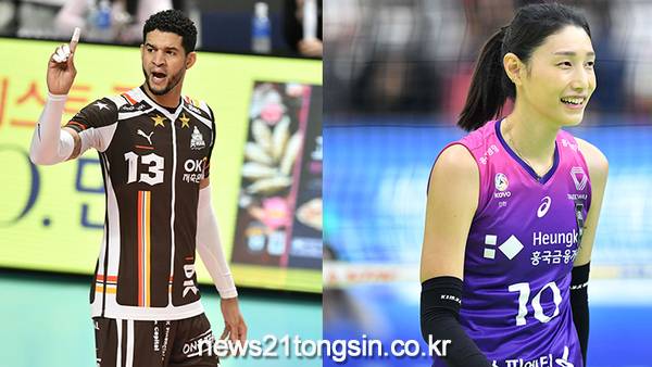 ▲ 사진=한국배구연맹(KOVO)도드람 2022~2023 V-리그 3라운드 MVP로 OK금융그룹의 레오와 흥국생명의 김연경이 선정되었다.
