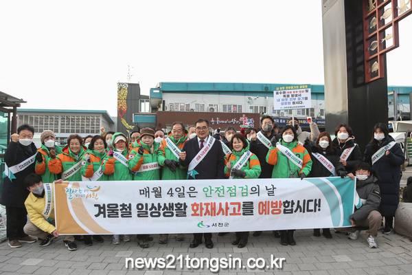 ▲ 서천군, 제294차 안전점검의 날 캠페인 전개 서천군이 17일 서천특화시장에서 겨울철 건조한 대기로 화재 발생 위험이 증가함에 따라 가정 내 안전사고를 예방하고자 제294차 안전점검의 날 캠페인을 전개한다.