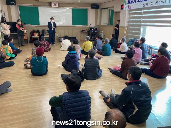 장항읍 노인건강교실은 지난해 12월부터 3월까지 지역 어르신들의 건강관리와 아름답고 활기찬 노후생활을 보낼 수 있도록 레크리에이션, 태극권, 건강체조, 장구 등 다양한 프로그램을 진행하고 중식을 제공하고 있다.