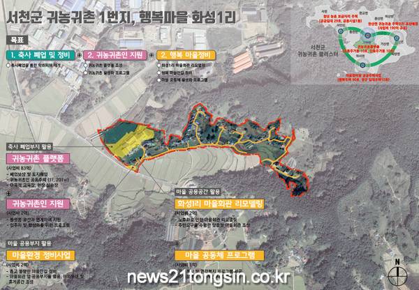 군은 축사의 오래된 악취와 축산분뇨로 인해 주민들의 지속적인 민원이 유발됐던 화성1리에 ‘서천군 귀농·귀촌 1번지, 행복마을 화성1리’을 목표로 2026년까지 국·도비 46억, 군비 24억 총 70억 원을 투입할 계획이다.