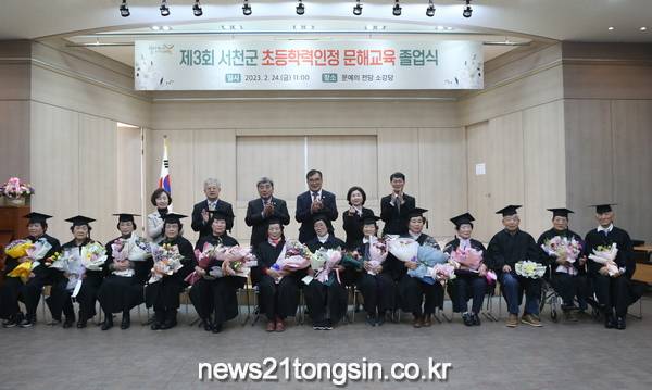 ▲ 서천군, 초등학력인정 문해교육 졸업식 개최서천군이 지난 24일 서천군 문예의전당 소강당에서 ‘제3회 서천군 초등학력인정 문해교육’ 졸업식을 가졌다.