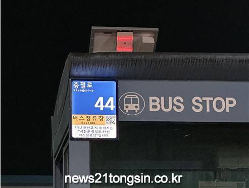 이에, 군은 주민들의 불편에 대응해 지난 1월부터 관내 버스정류장 42개소에 사물주소판을 설치했으며, 사물주소판에 한글 도로명과 로마자 도로명이 같이 표기됐다.