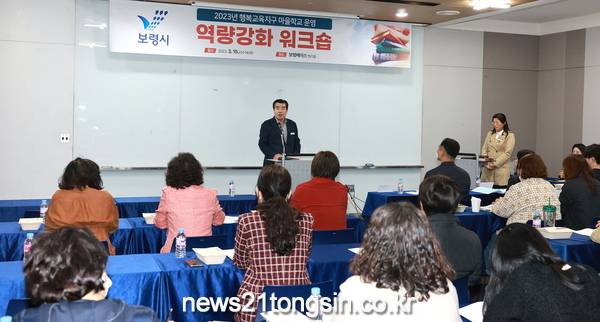 ▲ 행복교육지구 마을학교 운영 역량강화 워크숍보령시는 15일 보령베이스에서 마을학교 운영자 및 사업담당자 등 30여 명이 참여한 가운데 2023년 행복교육지구 마을학교 운영 역량 강화 워크숍을 실시했다고 밝혔다.
