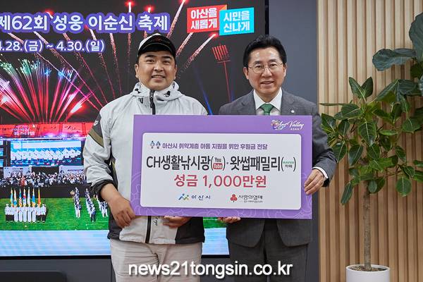 이날 전달한 성금은 유튜브 채널 수익금 등으로 마련됐으며, 충남사회복지공동모금회를 통해 아동복지시설과 아산시 취약계층 아동들을 위한 사업에 활용될 예정이다.