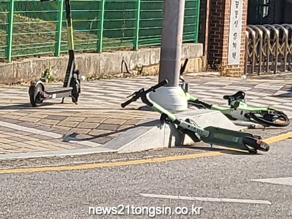 전동킥보드의 운영방식은 목적지까지 가서 요금을 정산하는 방식이다. 목적지에 도착하면 아무 곳이나 놓고 가기 때문에 여기저기 넓부러져 흉한 모습으로 거리에 쓰레기 처럼 보이고 행단보드를 지나가는 시민들도 불편함을 호소하고 있어 대책 마련이 시급하다고 말했다.