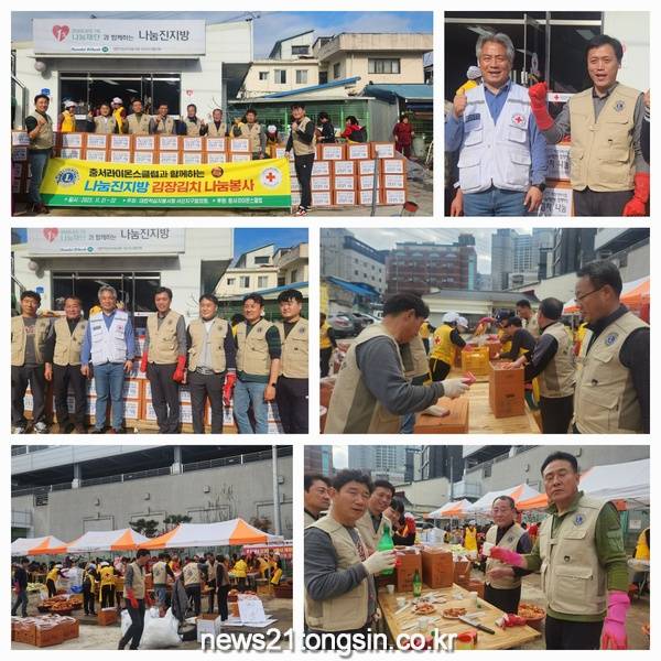 충서라이온스 클럽(회장 이선호)는 지난 22일 대한적십자 서산 지구협의회(회장 김인숙)과 사랑의 김장 나눔행사를 하였다.이날 행사 참여에는 대한적십자 충남지사 황종헌부회장과 충서라이온스회원과 적십자 서산지구회원 약 80여명이 봉사에 참여하였다