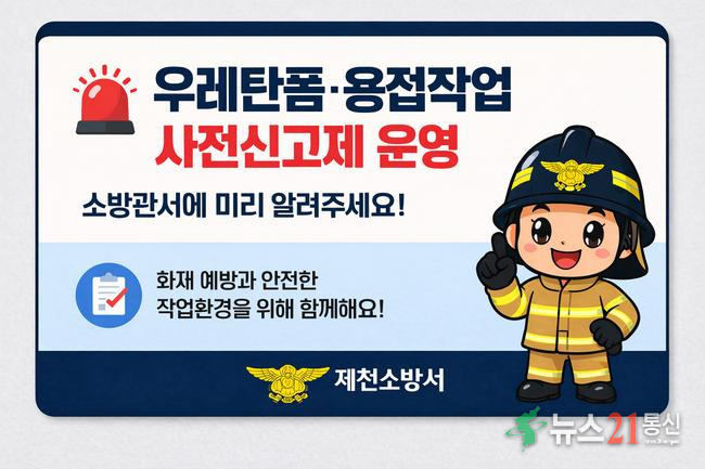 충북 제천소방서(서장 오권택)가 물류창고 등 화재 취약시설에서의 우레탄폼 작업과 용접·용단 작업에 대해 사전신고제를 운영하며 화재 예방 강화에 나선다.제천소방서는 26일, 우레탄폼 및 용접·용단 작업이 화재 위험성이 높은 대표적 공정인 만큼, 작업 전 사전 신고를 통해 현장 안전관리를 강화하겠다고 밝혔다.우레탄폼 작.