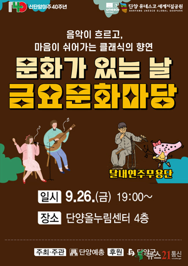 주간 금요문화마당 포스터.[사진=단양군]충북 단양군이 주민과 관광객을 위한 특별한 문화 프로그램을 선보인다.